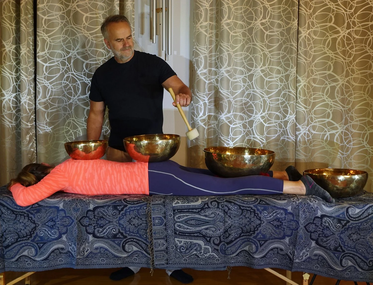 Ab 2026 lädt Jörg dich in den AkashaBowls® Showroom in Dachau bei München ein. Dort bietet er den durch das Sound Medicine Institute Germany zertifizierten Intensiv-Kurs Klangschalenmassage mit tibetischen Klangschalen an.